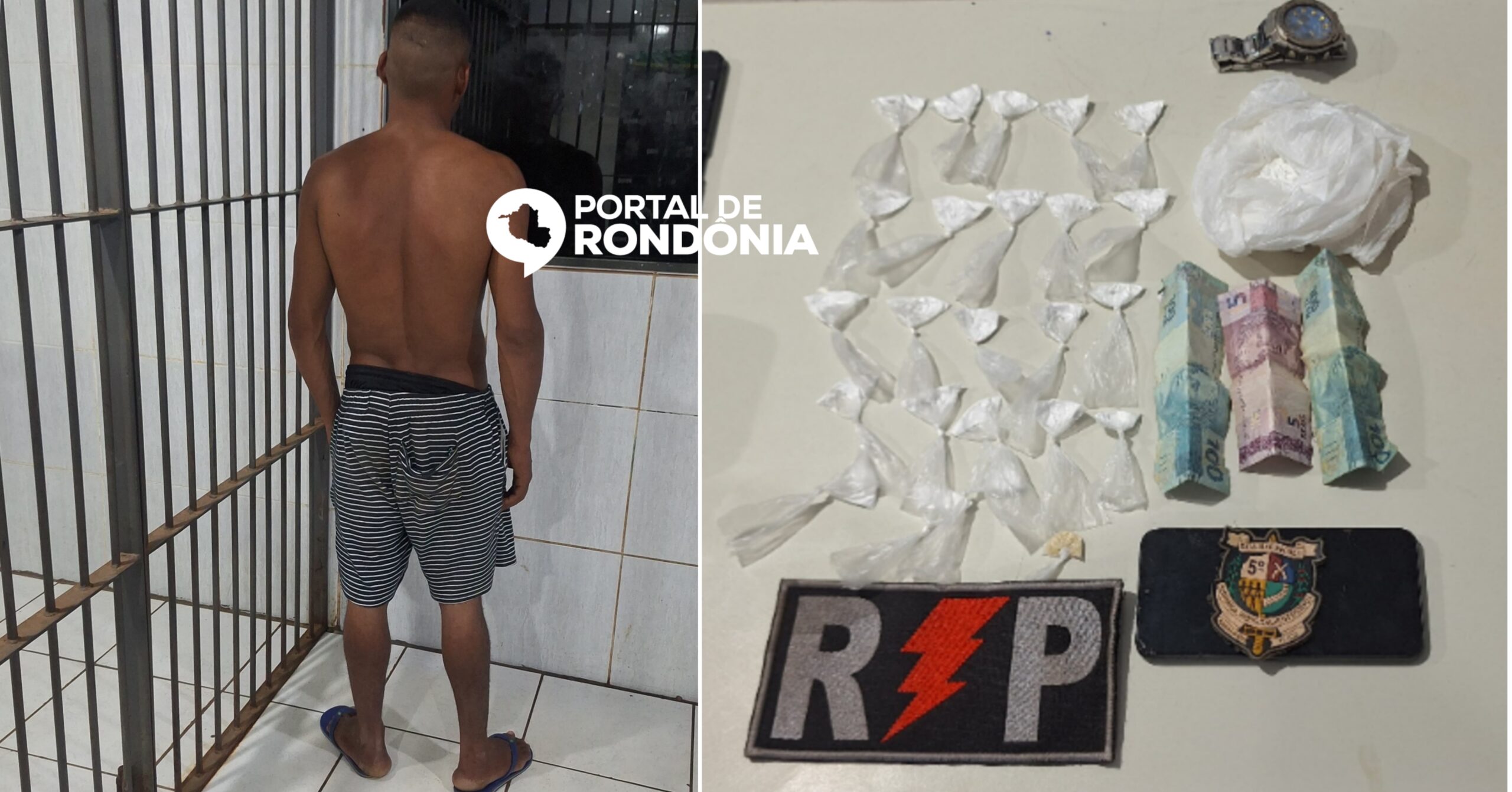 Um jovem de 24 anos, foi preso na noite desta sexta-feira (01/08), por tráfico de drogas. O flagrante ocorreu na rua Rita Ibanez, bairro Teixeirão, zona leste de Porto Velho.