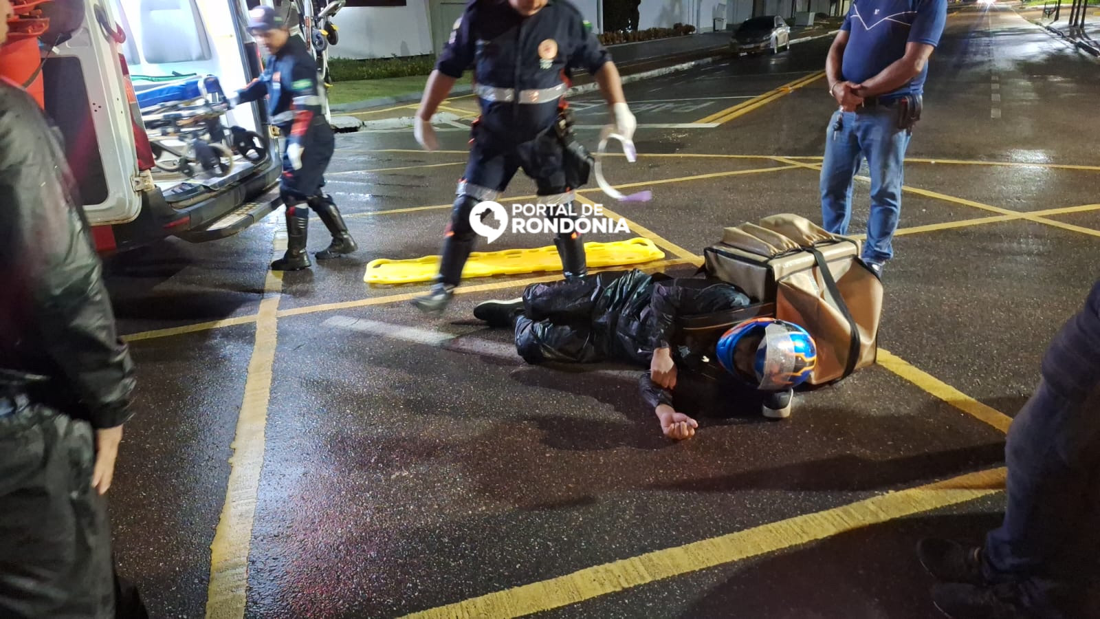 Motoboy de delivery fica ferido após colisão com carro na região central
