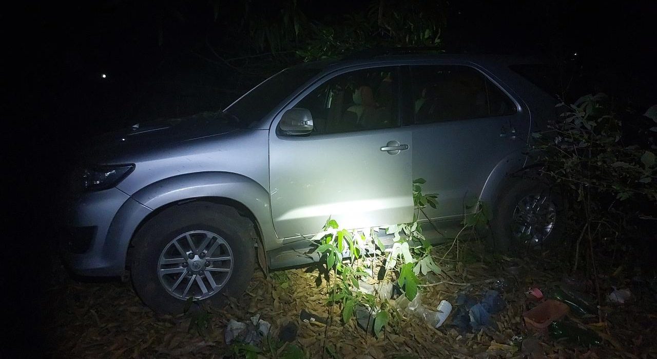 No local, os policiais confirmaram que se tratava de uma Toyota Hilux SW4 de cor prata, que estava abandonada em meio ao matagal. Após consulta, foi verificado que o automóvel possuía registro de roubo.