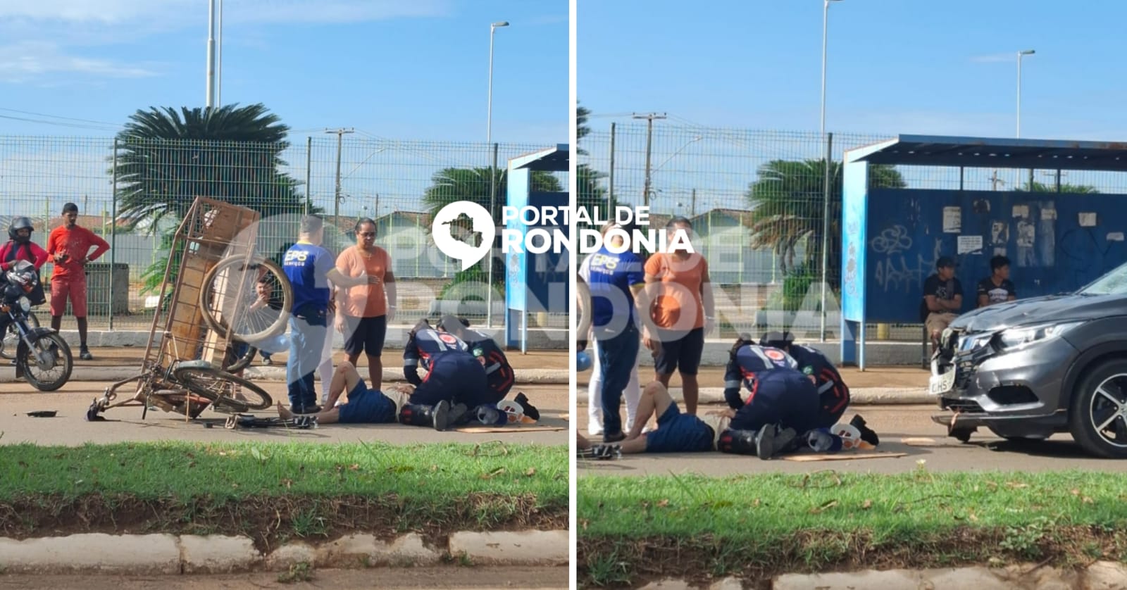 Um ciclista foi atropelado por um carro na manhã desta quarta-feira (01/10), na avenida Rio de Janeiro, em frente ao supermercado DB, bairro Lagoa, zona leste de Porto Velho.