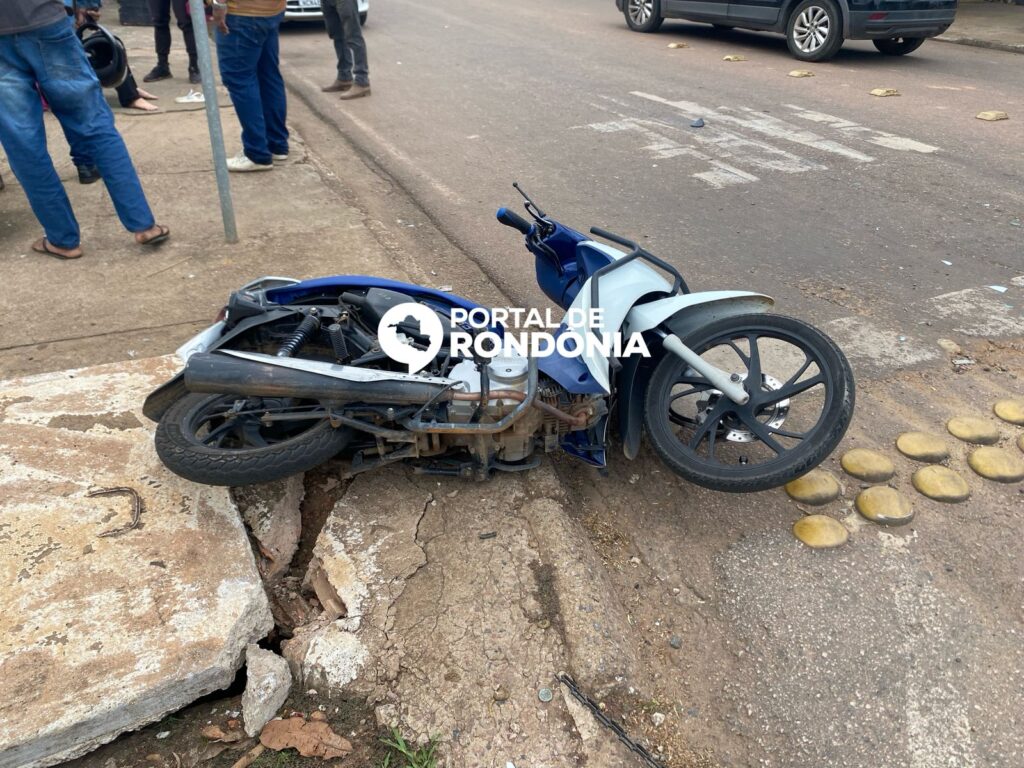 Acidente envolvendo carro e moto é registrado em cruzamento de Porto Velho