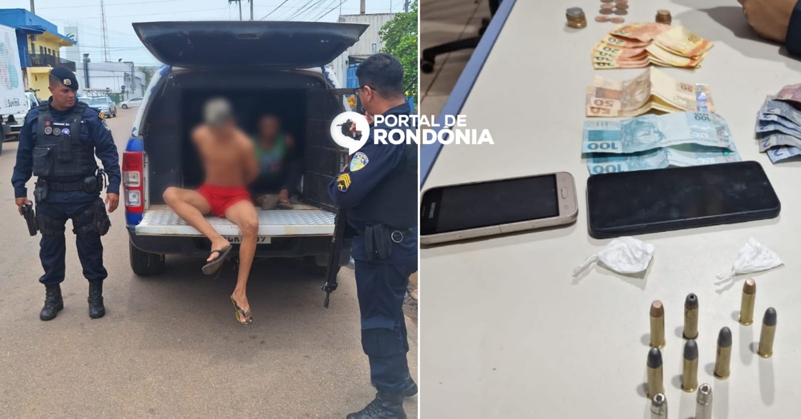 De acordo com informações apuradas pela equipe do Jornal Eletrônico Portal de Rondônia, a guarnição realizava patrulhamento pela região, quando os suspeitos foram abordados na frente de um mocó. No local, foram encontradas 12 munições de calibres .38 e 9mm, porções de cocaína, embalagens usadas para o tráfico e R$ 447,40 em dinheiro.