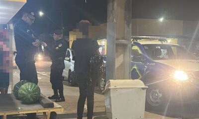 Ainda durante a abordagem, foi verificado que um dos suspeitos foi identificado como Sérgio W., de 27 anos, foragido da Justiça com mandado de prisão em aberto por furto, válido até 2028, expedido pela Vara de Execuções Penais e Medidas Alternativas.