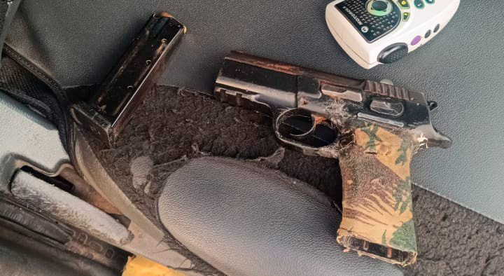 A Polícia Militar prendeu um homem armado logo após o roubo de uma motoneta. O indivíduo também havia ameaçado um motorista de aplicativo utilizando uma pistola e, de posse da motocicleta roubada, fugido em direção a Presidente Médici.