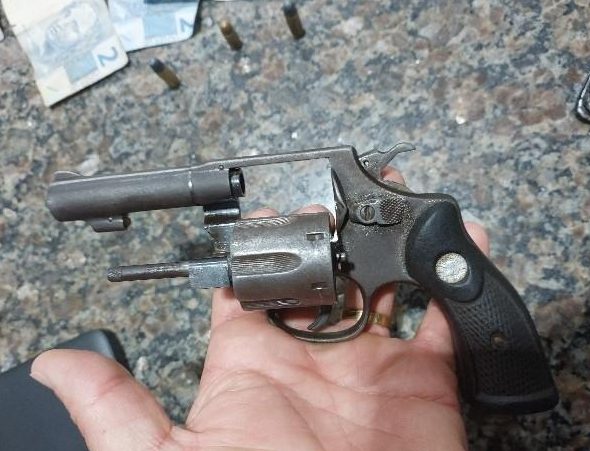 Após a intervenção, o local da fuga foi vistoriado e, com base em imagens de câmeras de segurança analisadas pelo Núcleo de Inteligência, foi possível identificar o momento em que um dos suspeitos descartava um objeto em meio à vegetação. As buscas resultaram na localização de um revólver calibre .32, contendo três munições, uma delas com sinais de falha de disparo.