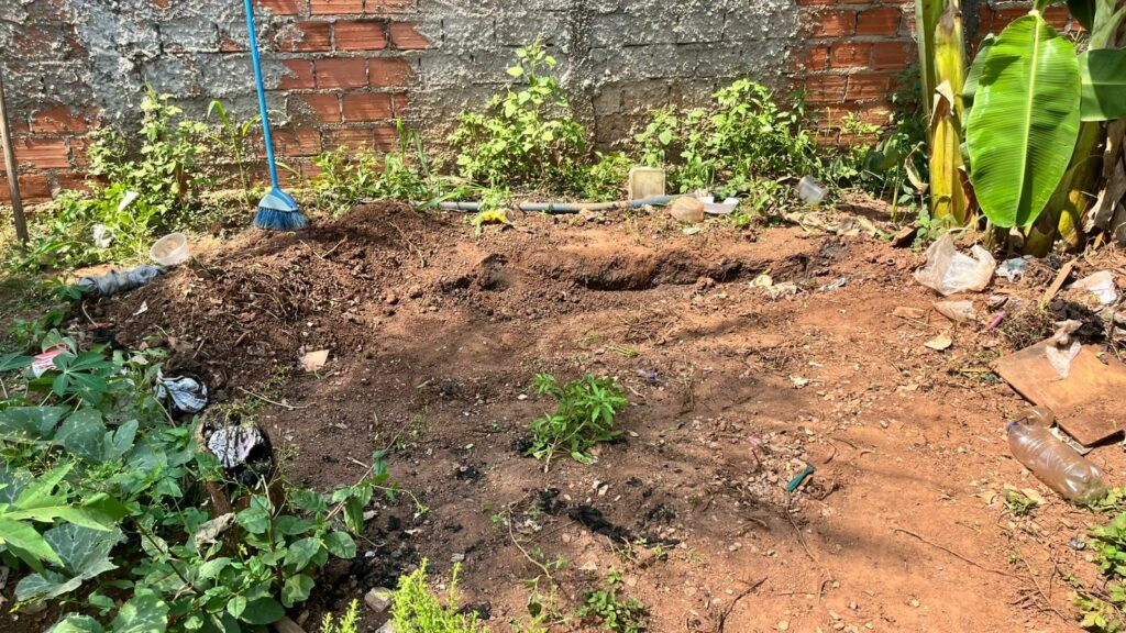 Corpo de homem é encontrado enterrado em cova rasa no quintal de residência