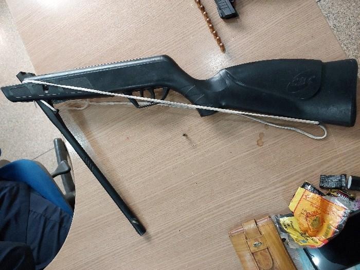 No local, as equipes entraram em contato com os responsáveis pela obra, que autorizaram a entrada dos policiais nos alojamentos para realização de buscas preventivas. Durante as vistorias, foram encontradas uma carabina calibre 5.5 com bloqueio para calibre .22 e uma munição do mesmo calibre, além de duas porções de substância esverdeada aparentando ser maconha.