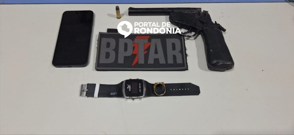 De acordo com informações apuradas pela equipe do Jornal Eletrônico Portal de Rondônia, a abordagem ocorreu após denúncia ao CIOP (Centro Integrado de Operações Policiais) de que a dupla trafegava com o veículo roubado. Durante a revista, os policiais encontraram a arma caseira e uma munição.