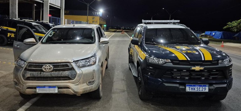 A Polícia Rodoviária Federal em Rondônia, nesta madrugada (20), recuperou uma caminhonete com ocorrência de roubo/furto e sinais de adulteração de identificação veicular. A abordagem ocorreu durante patrulhamento na BR 364, no km 519, em Ariquemes, após o veículo reduzir a velocidade significativamente ao avistar a viatura policial.