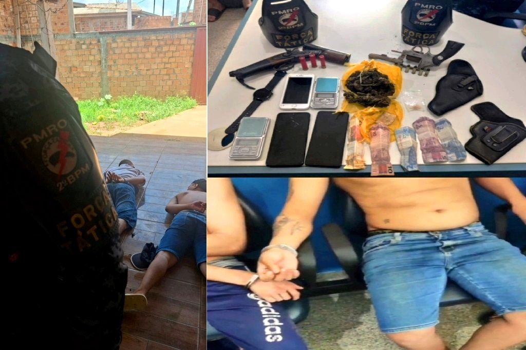 No imóvel, os policiais localizaram uma arma de cano duplo, balanças de precisão, porções de maconha e crack, além de dinheiro. Três dos presos são maiores de idade e vieram de Cacoal, Presidente Médici e Porto Velho. O menor de idade possuía mandado de internação em aberto.