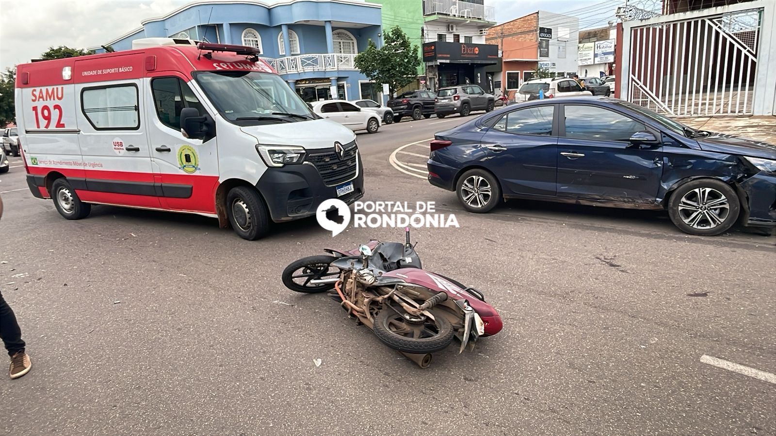 De acordo com informações apuradas pela equipe do Jornal Eletrônico Portal de Rondônia, uma mulher conduzia a moto Honda Bis na avenida Abunã, sentido bairro, quando foi atingida por um carro que teria avançado a preferencial.