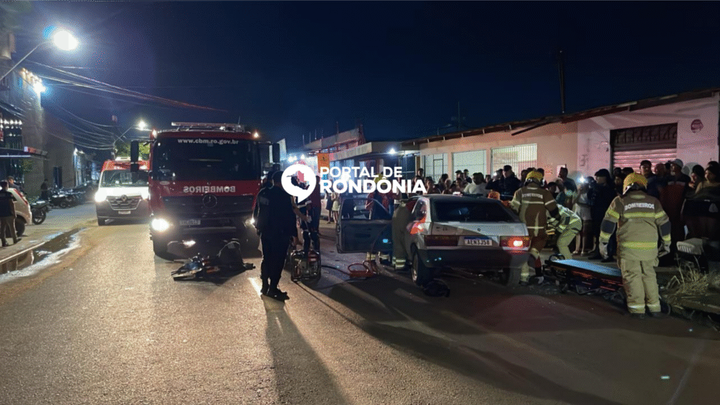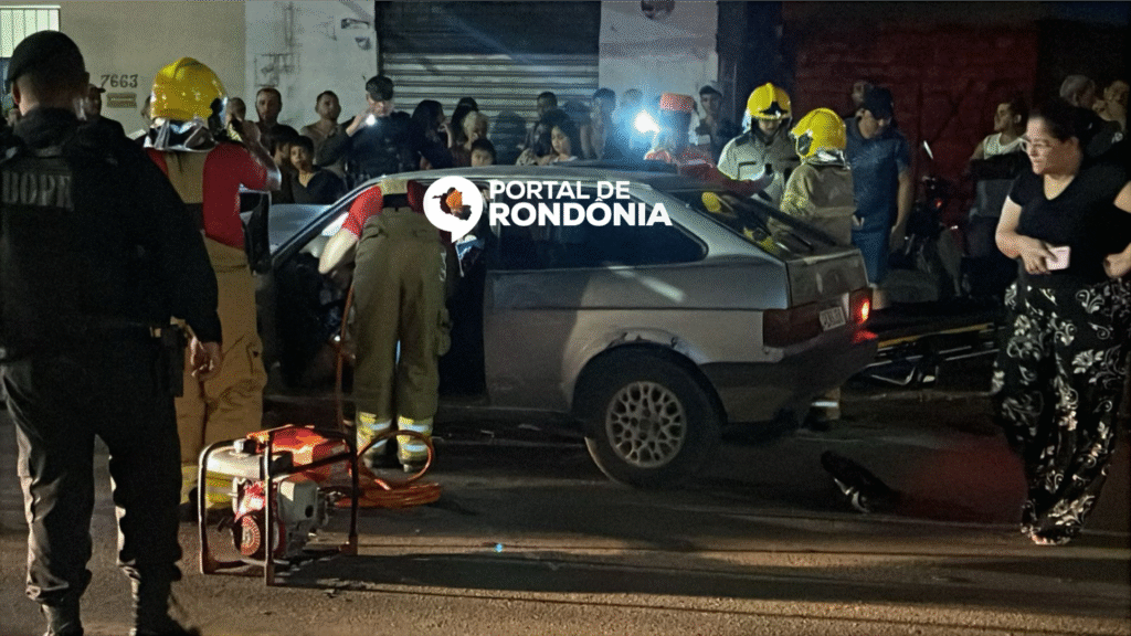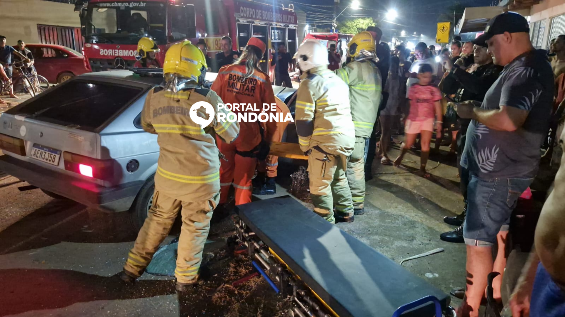Uma idosa ficou presa às ferragens após se envolver em um acidente de trânsito na noite desta sexta-feira (31/10), na rua Plácido de Castro, bairro JK, zona leste de Porto Velho.