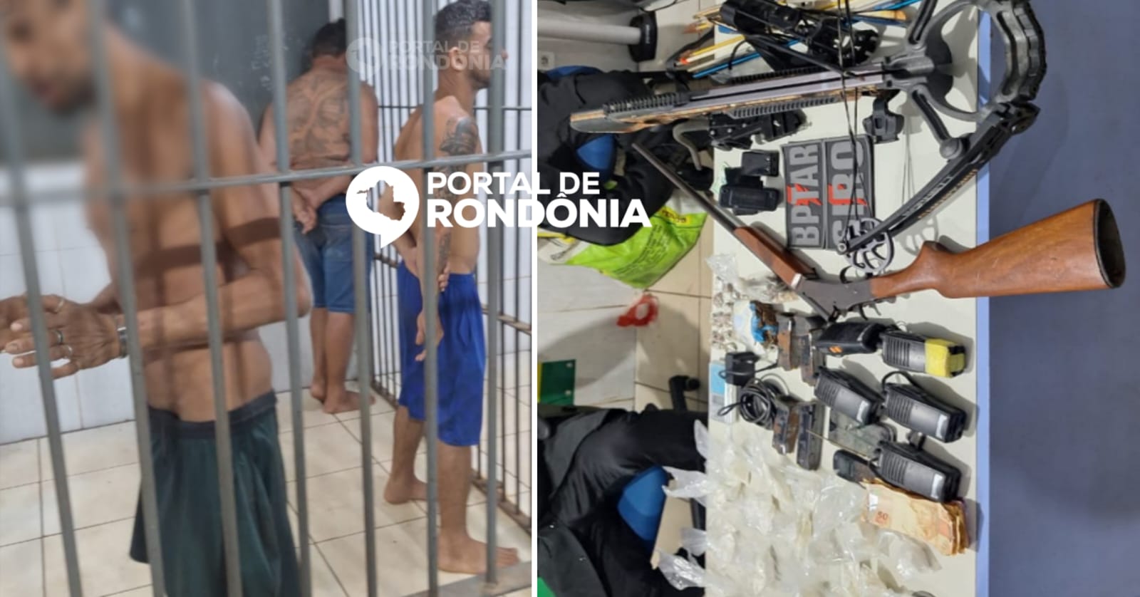 De acordo com informações apuradas pela equipe do Jornal Eletrônico Portal de Rondônia, os policiais do Batalhão de Policiamento Tático de Ação e Reação (Bptar), encontraram uma espingarda calibre 36, uma besta (arma artesanal de precisão), rádios comunicadores, carregadores de pistola, grande quantidade de munições e porções de maconha, cocaína e crack. Duas bicicletas também foram apreendidas no local.
