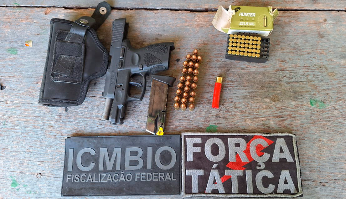 Durante a fiscalização, um dos indivíduos portava uma pistola Taurus calibre 9 mm, acompanhada de 26 munições intactas. Embora tenha apresentado a documentação da arma, o abordado não possuía autorização para porte, já que se trata de calibre de uso restrito.