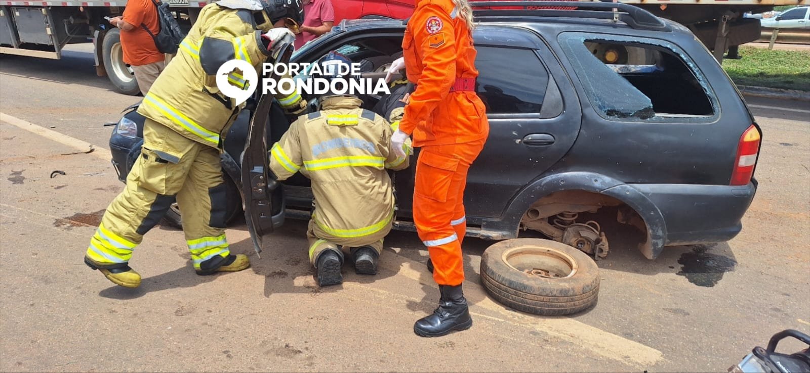 De acordo com informações apuradas pela equipe do Jornal Eletrônico Portal de Rondônia, ambos os veículos seguiam na BR-364 sentido Candeias do Jamari, quando o carro modelo Fiat Palio Weekend foi atingido e arrastado por uma carreta.