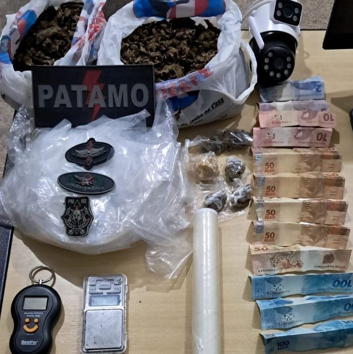 Na terça-feira, 18 de novembro, uma ação da equipe PATAMO do 4º Batalhão da Polícia Militar resultou na apreensão de uma grande quantidade de drogas e diversos materiais utilizados no tráfico, em uma residência no Bairro São José, em Espigão do Oeste.