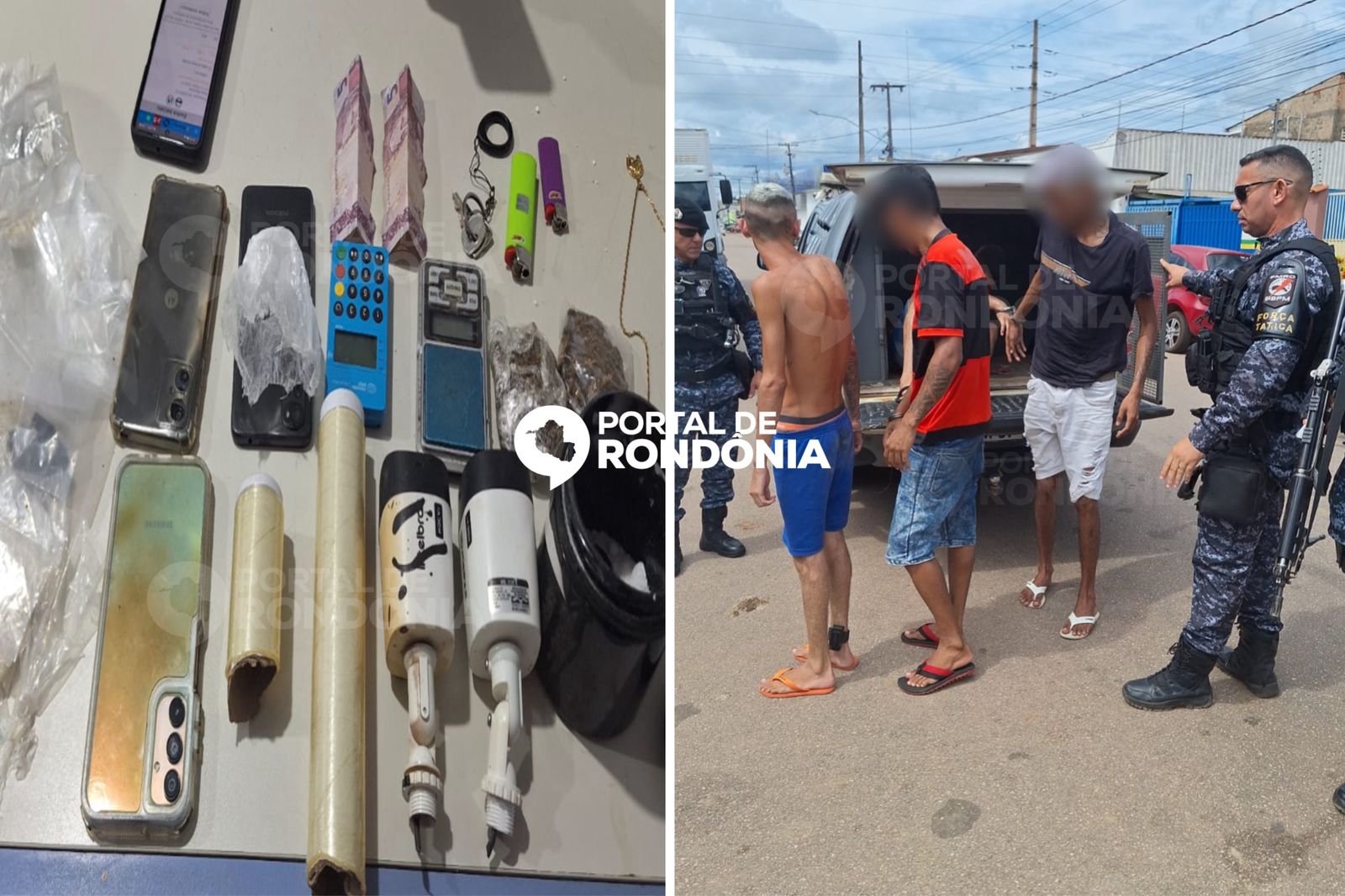 Quatro criminosos foram presos na tarde desta quinta-feira (27/11), após a Polícia Militar fechar um ponto de venda de drogas que funcionava disfarçado de distribuidora na rua Altemar Dutra, bairro JK, zona leste de Porto Velho.
